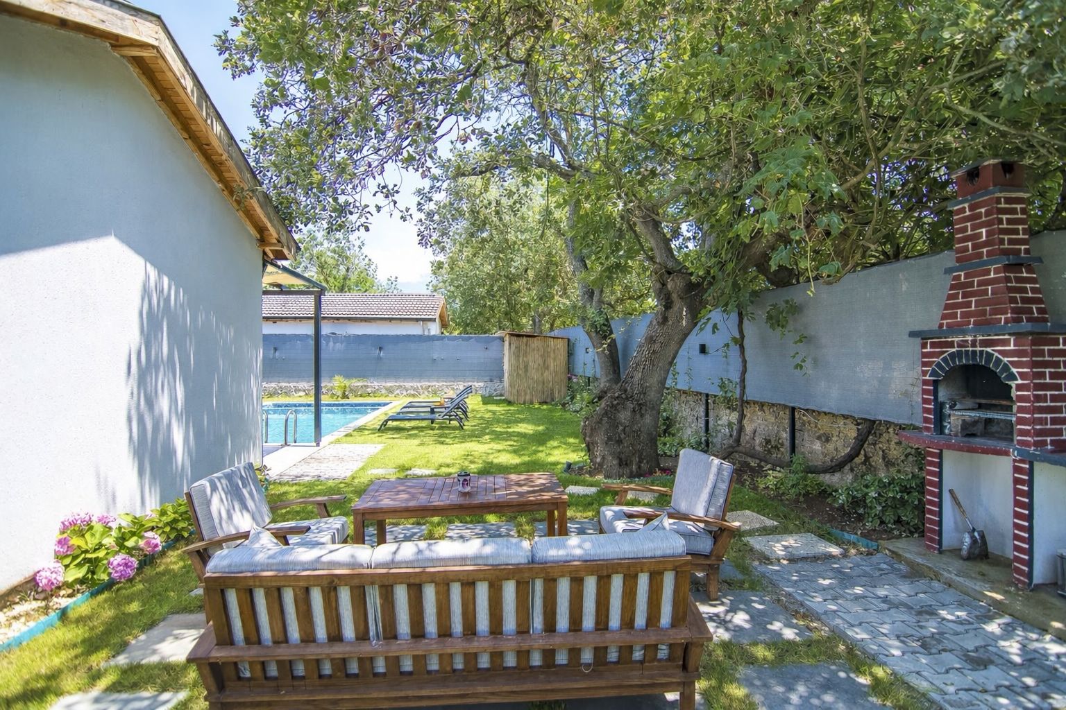Tam Korunaklı Alan: Dışarıdan görünmeyecek şekilde tasarlanmış bahçe ve havuz alanı sayesinde tam mahremiyet sağlar.